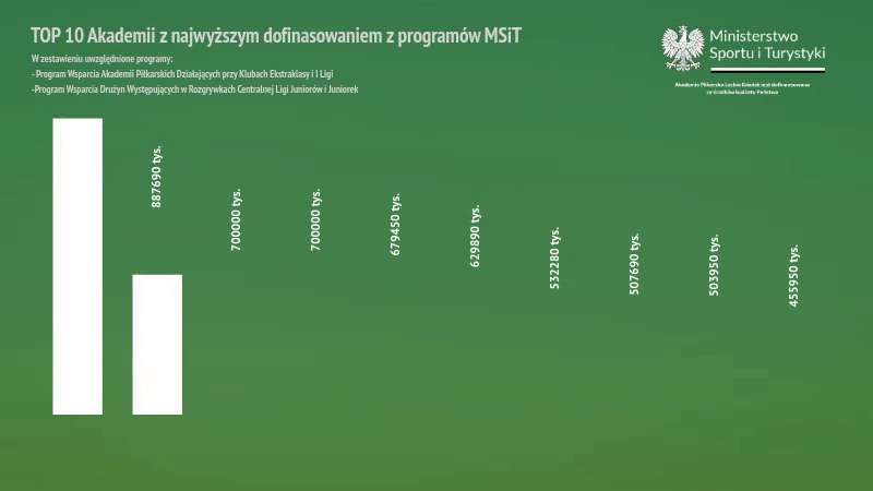 Programy realizowane przez Ministerstwo Sportu i Turystyki mają na celu popularyzację aktywności fizycznej wśród dzieci i młodzieży, a także podnoszenie jakości szkolenia w najlepszych akademiach piłkarskich w Polsce. Wsparcie tego typu stanowi istotny element rozwoju klubów, które konsekwentnie inwestują w szkolenie przyszłych pokoleń piłkarzy.